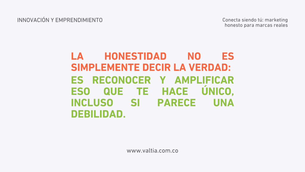 Las empresas son tan únicas como las personas. Así que aunque todavía no le hayas puesto nombre a eso que te diferencia, existe una razón por la que alguien allá afuera elige tu producto o servicio en lugar de otro. Ese es tu potencial. Y en este contexto, la honestidad no es simplemente decir la verdad: es reconocer y amplificar eso que te hace único, incluso si parece una debilidad.