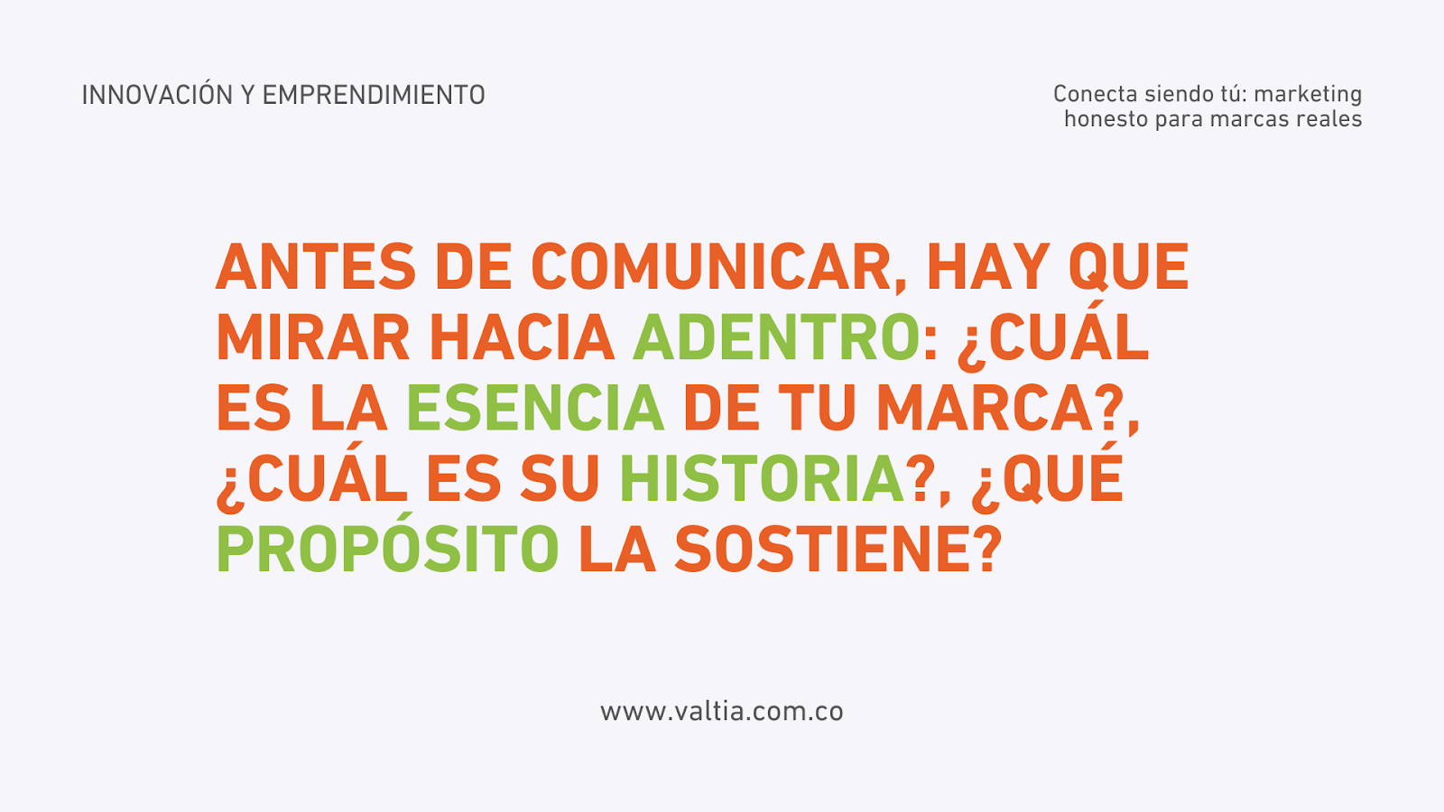 Pero ojo, para hablar con honestidad hay que tener claridad. No puedes construir una estrategia sobre una verdad que no conoces. Por eso, antes de comunicar, hay que mirar hacia adentro: ¿cuál es la esencia de tu marca?, ¿cuál es su historia?, ¿qué propósito la sostiene?