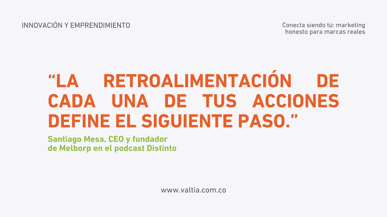 Santiago Mesa, CEO y fundador de Melborp, lo dice claro en el podcast Distinto: “La retroalimentación de cada una de tus acciones define el siguiente paso.”
